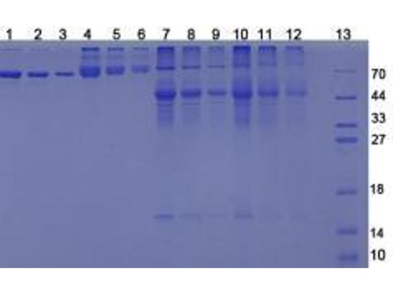 The thermal stability is described by the loss rate of the target protein. The loss rate was determined by accelerated thermal degradation test, that is, incubate the protein at 37 °C for 48h, and no obvious degradation and precipitation were observed. (Referring from China Biological Products Standard, which was calculated by the Arrhenius equation.) The loss of this protein is less than 5% within the expiration date under appropriate storage condition. -