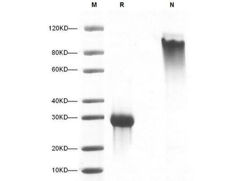 - 29-31 kDa, observed by reducing SDS-PAGE.