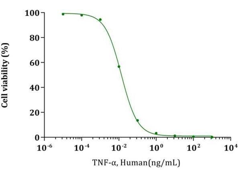 - ED50 < 30 pg/mL, measured in a cytotoxicity assay using L-929 mouse fibrosarcoma cells in the presence of the metabolic inhibitor actinomycin D, corresponding to a specific activity of > 3.3 x 10^7 units/mg.