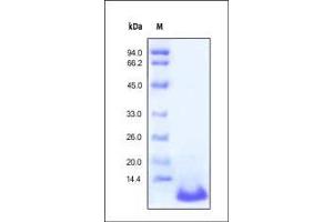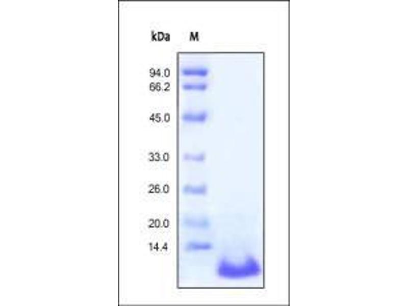 - This protein carries no "tag". The protein has a calculated MW of 8.3 kDa. The protein migrates as 8.3 kDa under reducing (R) condition (SDS-PAGE).