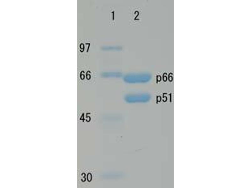 - HIV-1 reverse transcriptase is an RNA-dependent DNA polymerase derived from HIV-1 (AIDS virus), subtype B origin. It also has RNaseH activity and is an enzyme indispensable for reproduction of AIDS virus. This protein is uniquely over-expressed as a recombinant protein in E. coli by a patented method and highly purified. It is composed of two subunits whose molecular weights are 66 kD and 51 kD, same as the those of the enzyme purified from AIDS virus particles.
