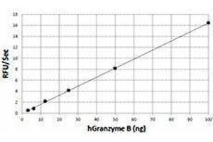 - Granzyme B is a serine protease expressed by cytotoxic T cells (CTL) and NK cells. Its main function is to induce cell death to eliminate harmful targets such as allogeneic, virally infected, and tumorous cells. This is evident by the fact that CTLs from mice with inhibited granzyme B production exhibit a profound defect in inducing rapid DNA fragmentation and apoptosis in target cells. Following receptor-mediated conjugate formation between CTL or NK and their target cell, granzyme B enters the target via endocytosis, and subsequently activates multiple protein substrates to induce apoptosis. Most circulating CD56+ CD8- NK cells, and approximately half of circulating CD8+ T cells, coexpress both granzyme A and B. In contrast, few circulating CD4+ T cells express granzymes A or B. Activation of CD8+ and CD4+ T lymphocytes induce substantial expression of granzyme B, but not granzyme A. Besides CTL and NK, evidence has shown that the distribution of human granzyme B has a broader spectrum of cells, including CD34+ hematopoietic progenitor cells, keratinocytes, basophils, mast cells, plasmacytoid dendritic cells, and B cells. Although its role in cytotoxic lymphocyte-mediated apoptosis is well established, granzyme B can also degrade extracellular matrix proteins and alter inflammation if present in the extracellular milieu. These findings suggest that granzyme B can function as an activation molecule with potentially important immunoregulatory functions. In addition, it was shown that expression of granzyme B is elevated in acute coronary syndrome and acute myocardia infarction, indicating that granzyme B could be a factor involved in cardiovascular diseases.