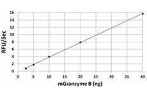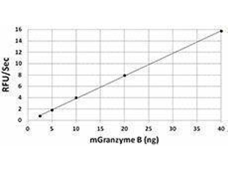 Biological activity: Recombinant mouse Granzyme B supplied in its inactive form. Once the mouse Granzyme B is activated by active mouse Capthepsin C/DPPI, it is able to cleave the peptide substrate t-Butyloxycaronyl-Ala-Ala-ThioBenzyl ester (Boc-AAD-SBzl) in the presence of 5,5'Dithio-bis (2-nitrobenzoic acid) (DTNB)1,2, with an activity > 3000 pmol/min/μg.