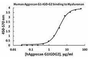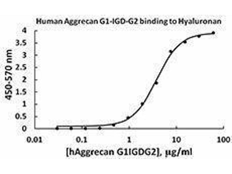 Biological activity: Recombinant human aggrecan (G1-IGD-G2) binds immobilized hyaluronan-biotin (0.1 μg/ml) on a streptavidin plate in a dose dependent manner with a ED50 of 2.5 - 9.0 μg/ml.