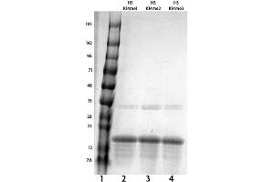 - The molecular weight of the recombinant histone is 15,271 Daltons.