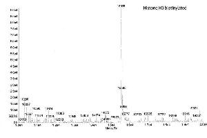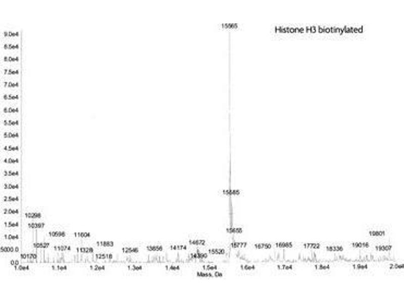 - Truncated human Histone H3.2 is produced in E. coli and purified using FPLC. The purified protein is subsequently ligated to a peptide containing the histone tail with a N-terminal biotin via a native peptide bond. The full-length protein is then repurified prior to lyophilization. Protein concentration was determined using the molar extinction coefficient for Histone H3 and absorbance at 280nm. Protein was determined to have ≥ 98 % purity by SDS-PAGE. The molecular weight is 15,565 Daltons.