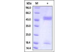 - Mouse FcRn / FCGRT & B2M Heterodimer Protein, produced by co-expression of FCGRT and B2M, has a calculated MW of 33 kDa (FCGRT) and 14.7 kDa (B2M). Subunit FCGRT is fused with his-tag at the C-terminus and subunit Beta-2 microglobulin (B2M) is fused with Twin-Strep tag at the C-terminus. The predicted N-terminus is Ser 22(FCGRT) & Ile 21(B2M). The reducing (R) protein migrates as 45-50 kDa (FCGRT) and 18 kDa (B2M) respectively due to glycosylation.