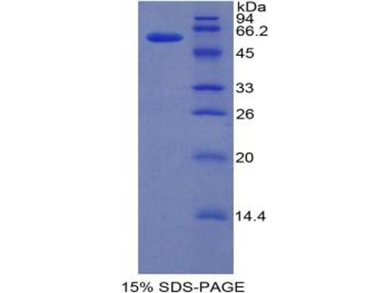 This Recombinant IRF1 protein is produced in Escherichia coli (E. coli).
