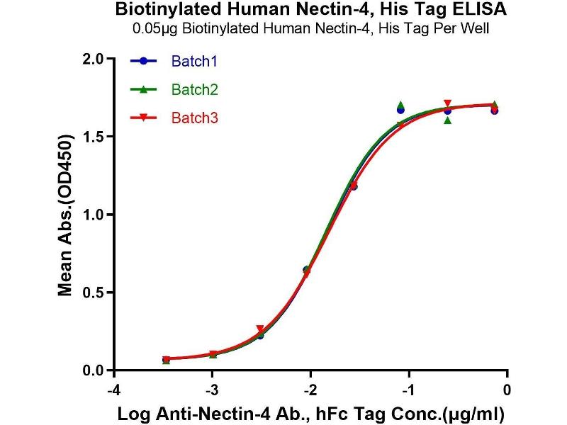 PVRL4 Origin: Human Host: HEK-293 Cells Recombinant > 95 % as determined by Tris-Bis PAGE,> 95 % as determined by HPLC