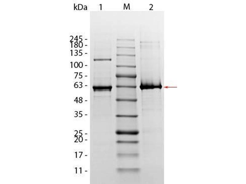 Application Note: Human AKT1 (phosphatase treated) recombinant protein has been tested in SDS-Page and western blot and is suitable as a control for polyclonal or monoclonal anti-AKT1 in immunological assays. Akt1 recombinant protein is dephosphorylated and in an inactive state. It is well suited as a control for anti-AKT pT308 which detects phosphorylated T308 residue, and anti-AKT pS473, that detects phosphorylated S473. For western blot use at 50 ng or less. For other assays concentration is user optimized.