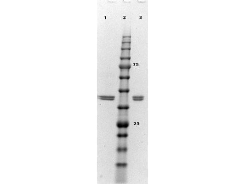 Application Note: Human ERK2 recombinant protein has been tested in SDS-Page and is suitable as a control for polyclonal or monoclonal anti-ERK2 in immunological assays. For western blot use at 50 ng or less. For other assays concentration is user optimized.