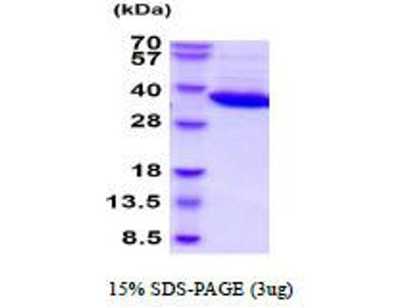 - 36.6 kDa (334aa) confirmed by MALDI-TOF