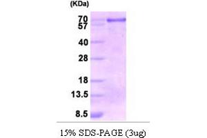 - 52.5 kDa (462aa) confirmed by MALDI-TOF (Molecular weight on SDS-PAGE will appear higher)