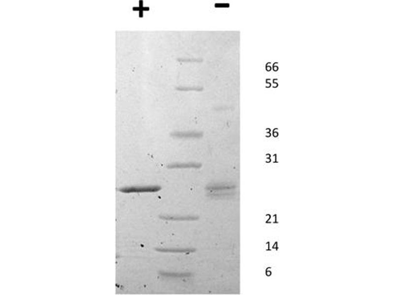 - Epstein-Barr Virus Induced Gene 3 purity was determined to be greater than 90% as determined by analysis by UV-Spectroscopy at 280nm and by reducing and non-reducing SDS-pAGE.