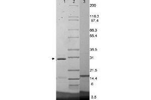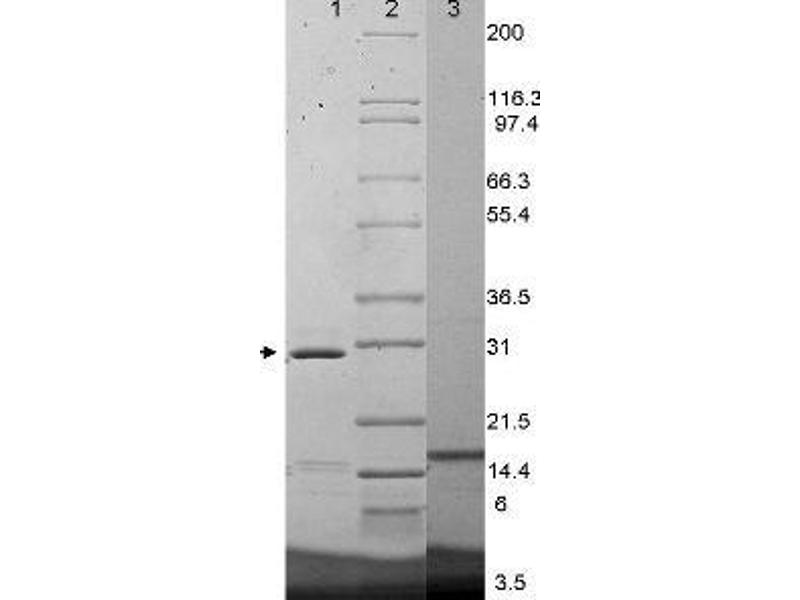 - Purity was determined to be greater than 97% as determined by analysis by RP-HPLC and by reducing and non-reducing SDS-PAGE.
