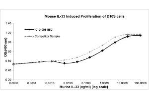 - Interleukin-33 purity was determined to be greater than 90% as determined by reducing and non-reducing SDS-pAGE.