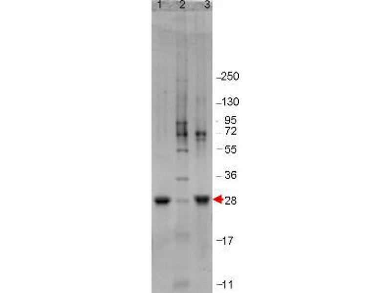- Purity greater than 95% as determined by analysis of RP-HPLC and reducing and non-reducing SDS-PAGE against a known standard.