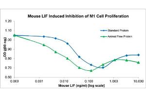 Background: Mouse Leukemia Inhibitory Factor (LIF) is member of the IL-6 family and is made by a variety of tissues. LIF signals through receptors gp190 (LIFR) and gp130 to activate STAT3 which ultimately promotes mouse embryonic stem cell self-renewal and pluripotency of long term cultures. This activity is similar to that attributed to FGF-basic (FGF-2) for human embryonic stem cells. Recombinant mouse LIF is a non-glycosylated protein, containing 181 amino acids, with a molecular weight of 20 kDa.