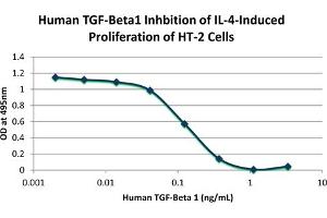 Application Note: Transforming Growth Factor beta 1 Recombinant Protein has been tested by biological activity and is suitable as a control for polyclonal or monoclonal anti-Transforming Growth Factor beta 1 in immunological assays.