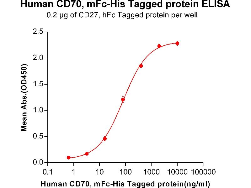 - Recombinant human CD70 protein with N-terminal mouse Fc and C-terminal 6xHis tag