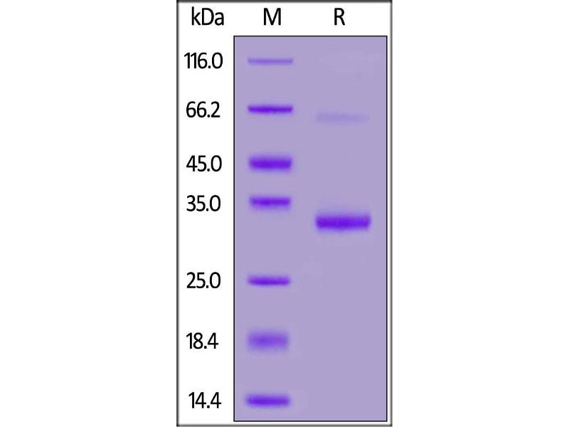 The product is exclusively produced using the Avitag™ technology. Briefly, a unique 15 amino acid peptide, the Avi tag, is introduced into the recombinant protein during expression vector construction. The single lysine residue in the Avi tag is enzymatically biotinylated by the E. Coli biotin ligase BirA.