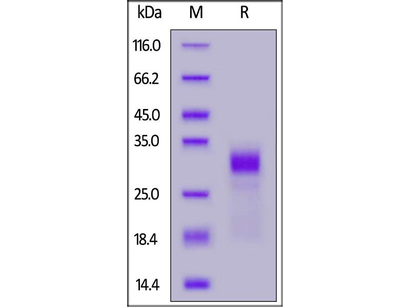 The product is exclusively produced using the Avitag™ technology. Briefly, a unique 15 amino acid peptide, the Avi tag, is introduced into the recombinant protein during expression vector construction. The single lysine residue in the Avi tag is enzymatically biotinylated by the E. Coli biotin ligase BirA.