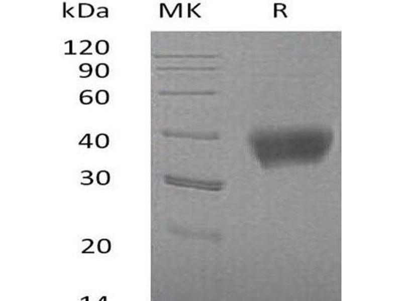 Background: Mouse myeloid cell surface antigen CD33(CD33) is a member of the immunoglobulin superfamily and SIGLEC (sialic acid binding Ig-like lectin) family. CD33 contains one Ig-like C2-type domain and one Ig-like V-type domain. CD33 is a putative adhesion molecule of myelomonocytic-derived cells that mediates sialic-acid dependent binding to cells. CD33 preferentially binds to alpha-2,6-linked sialic acid. The sialic acid recognition site may be masked by cis interactions with sialic acids on the same cell surface. In the immune response, CD33 may act as an inhibitory receptor upon ligand induced tyrosine phosphorylation by recruiting cytoplasmic phosphatase(s) via their SH2 domain(s) that block signal transduction through dephosphorylation of signaling molecules. CD33 induces apoptosis in acute myeloid leukemia. CD33 is becoming increasingly important as a target of antibody-mediated therapy in acute myeloid leukaemia (AML).