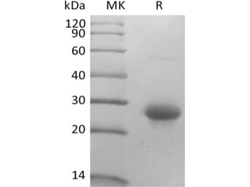 Background: CD27 Ligand (CD70) is a 30 kDa type 2 transmembrane glycoproteinis that belongs to the tumor necrosis factor (TNF) ligand family.Human CD27 Ligand extracellular region is 64 % aa identical to mouse and rat CD27 Ligand extracellular regions. This cytokine is a ligand for TNFRSF27/CD27. It is a surface antigen on activated, but not on resting, T and B lymphocytes. It induces proliferation of costimulated T cells, enhances the generation of cytolytic T cells, and contributes to T cell activation. This cytokine is also reported to play a role in regulating B-cell activation, cytotoxic function of natural killer cells, and immunoglobulin sythesis.