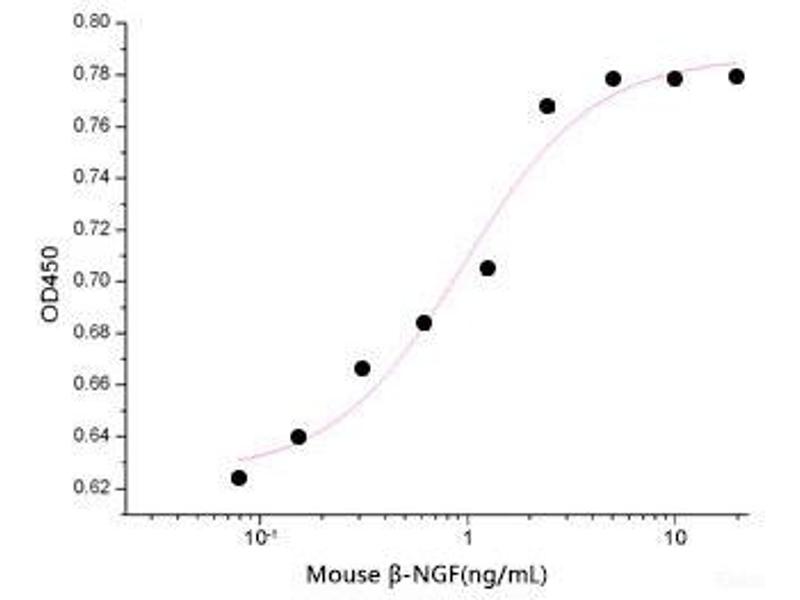 Background: NGF is the first member discovered in the Neurotrophin family, which includes brain-derived neurotrophic factor (BDNF), neurotrophin-3 (NT-3), and neurotrophin-4 (NT-4). These proteins belong to the cysteine-knot family of growth factors that assume stable dimeric structures. Mouse beta -NGF is a homodimer of two 120 amino acid polypeptides. It shares approximately 90 % homology at the amino acid level with human beta -NGF and 95.8 % with rat beta -NGF. NGF signaling has been shown to play an important role in neuroprotection and repair. β-NGF acts as a growth and differentiation factor for B lymphocytes, and enhances B-cell survival. It is a potent neurotrophic factor that signals through its receptor β-NGFR, and plays a crucial role in the development and preservation of the sensory and sympathetic nervous systems.