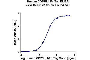 - Immobilized Human B7-H7, His Tag at 2μg/ml (100μl/well) on the plate. Dose response curve for Human CD28H, hFc Tag with the EC50 of 81ng/ml determined by ELISA. See testing image for detail.