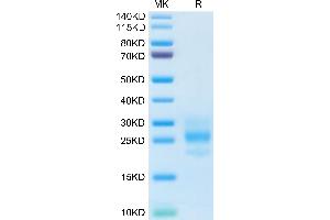18.40 kDa. Due to glycosylation, the protein migrates to 23-28 kDa based on Tris-Bis PAGE result.