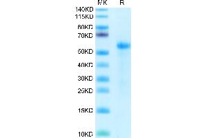 - 48.80 kDa. Due to glycosylation, the protein migrates to 52-62 kDa based on Tris-Bis PAGE result.
