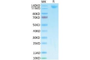 - 100.6 kDa. Due to glycosylation, the protein migrates to 120-140 kDa based on Tris-Bis PAGE result.