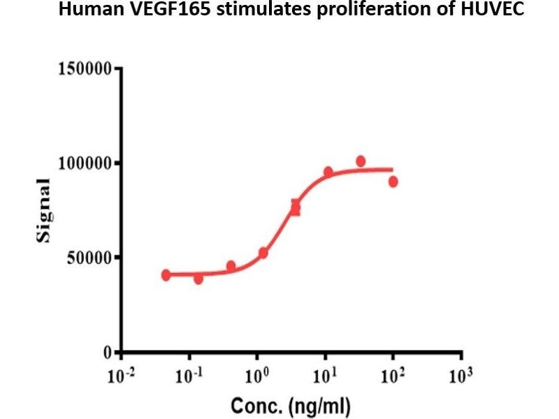 - Recombinant Human VEGF165 Protein is expressed from HEK293 without tag.It contains Ala27-Arg191.