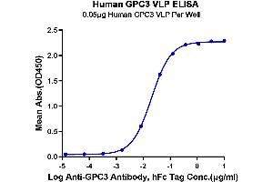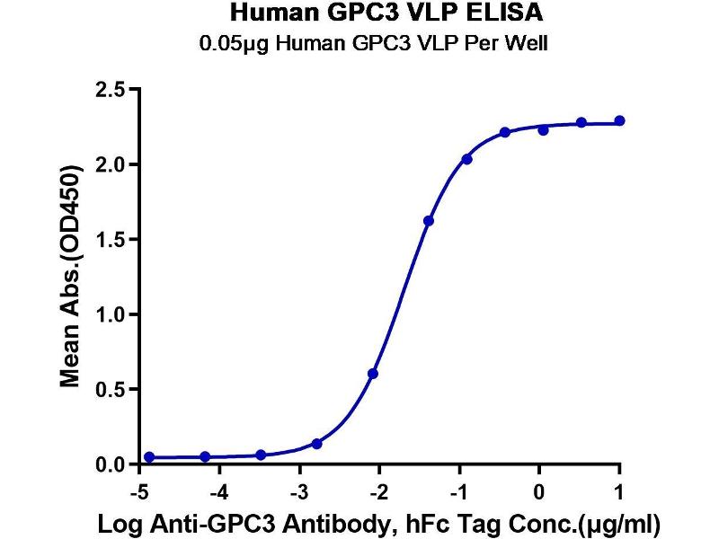 - Immobilized Human GPC3 VLP at 0.5μg/ml (100μl/Well) on the plate. Dose response curve for Anti-GPC3 Antibody, hFc Tag with the EC50 of 20.2ng/ml determined by ELISA.