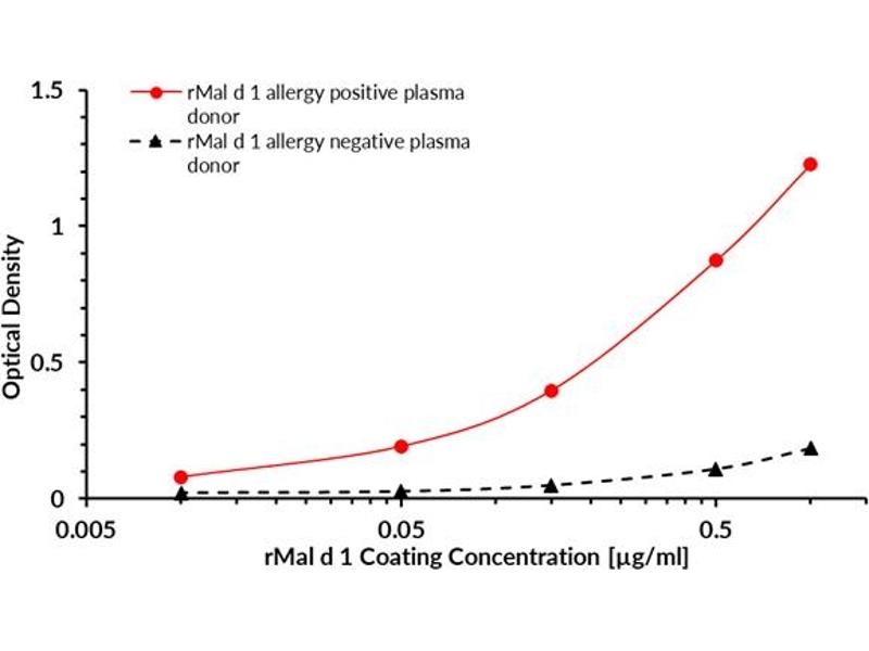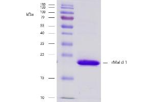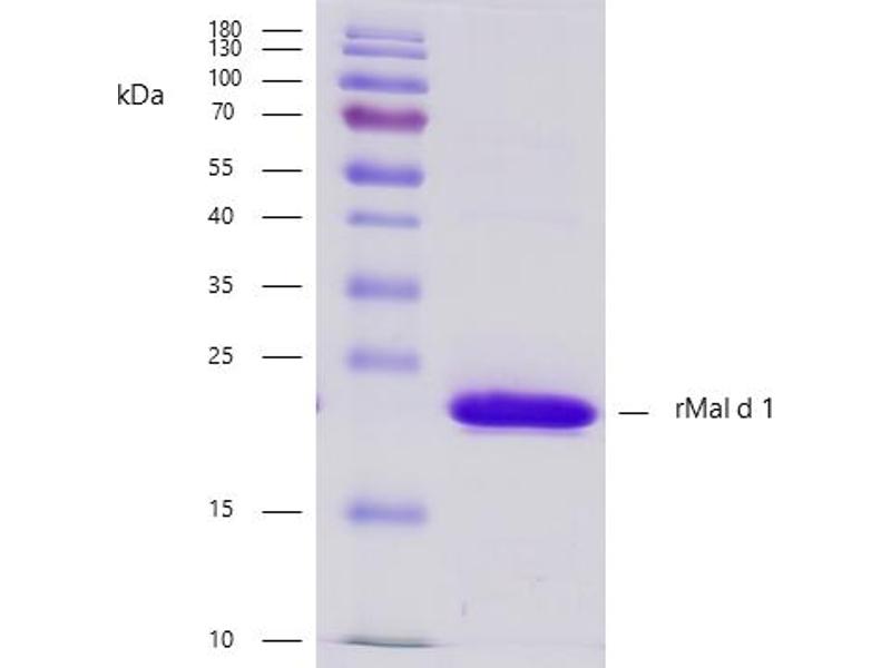 - Recombinant protein rMal d 1 is expressed in Escherichia coli. DNA sequence encoding 180 AAs was fused with Strep-tag at the N-terminus. A calculated molecular mass of recombinant protein is 19,9 kDa.