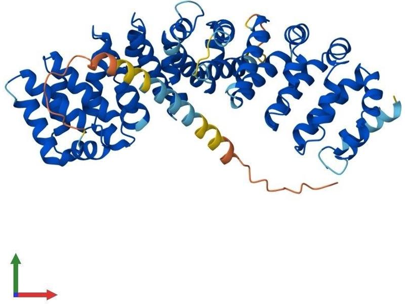 - MWSRRQGRLR PTVCGVEELR RRRREREAAL RKARREQQLV SKRLLRNDAP EEAGEGCVAA ILGETEVQQF LRQAQRGTEE KEREGALVSL RRGLQHPETQ QTFIRLEGSM RTLVGLLTSN QALLQLEAAR CLHELSHSEQ STVAEACLPA TSYLLTYLSS HSSDFIELCL YTLGNLIVES EAVRRQLLPQ GIVPALAACI QSPHVAVLEA LGYALSQLLQ AEEAPEKIIP SILASTLPQH MLQMLQPGPK LNPGVAVEFA WCLHYIICSQ VSNPLLIGHG ALSTLGLLLL DLAGAVQKTE DAGLELLACP VLRCLSNLLT EAAVETVGGQ MQLRDERVVA ALFILLQFFF QKQPSLLPEG LWLLNNLTAN SPSFCTSLLS LDLIEPLLQL LPVSNVVSVM VLTVLCNVAE KGPAYCQRLW PGPLLPALLH TLAFSDTEVV GQSLELLHLL FLYQPEAVQV FLQQSGLQAL ERHQEEAQLQ DRVYALQQTA LQG Sequence without tag. The proposed Strep-Tag is based on experience with the expression system. Our team may suggest an additional tag depending on the complexity of the protein. If you have a special request, please contact us.