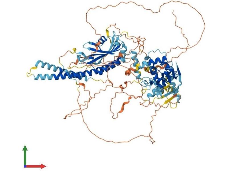 - MISAPDVVAF TKEDEYEEEP YNEPALPEEY SVPLFPYASQ GANPWSKLSG AKFSRDFILI SEFSEQVGPQ PLLTIPNDTK VFGTFDLNYF SLRIMSVDYQ ASFVGHPPGS AYPKLNFVED SKVVLGDSKE GAFAYVHHLT LYDLEARGFV RPFCMAYISA DQHKIMQQFQ ELSAEFSKAS ECLKMGNRKA FAGELEKKLK DLDYTRTVLH TETEIQKKAN DKGFYSSQAI EKANELANVE KSIIEHQDLL RQIRSYPRQK TKIPDLQPGD TEHTQDQADQ VSTTSNPEES ANADLYTCRP AYTPKLIKAK STKCFDKKLK TLEELCDTEY FTQTLAQLSH IEHMFRGDLC YLLTSQIDRV LRKQQPITNF LFEDFVEVDD RMEKQENVPS QPSQDRLPPK PVEECPIPKV LISVGSYKSS VESVLIKMEQ ELGDEEYTGV EATEARSFDP QENLDYLDMD MKGSISSGES IEVLGTEKSA SVLSKSDSQA SLTVPLSPHV VRSKAVSHRT ISEDSIEVLS TCPSEALIPD DFKASYPSAI NEEEAYADNE GAIHFQASAG SPEPDETQEG NLENIPSQID SSCCIGKESE GHLVPLPTPA YTLSDEDSVV SIPPQRYIQK DQGLHVDFGV ENTDPSPRDN SCEMFPAYEL DPSCLLASRD VSKMSLDNYS DTTSYMGSAA STSSDRIPSA PPAGLSSERH KKRAGQNALK FIRQYPFAHP AIYSLLSGRT LVVLGEDETI VRKLVTALSI FVPNYGCYAK PVKHWISSPL HIMDFQKWKL IGLQRVASPA NVGTLHTLSR YSRYTSILDL DSKTLRCPLY RGTLVPRLAD HRTQIKRGST YYLHVQSMLT QLCSKAFLYT FCHHLHLPAH SEETQEAVAS RQTSFLKLNL GLVNEDIRVV QYLAELLKLH YMQESPGTTH PLLRFDYVPS FLYKI Sequence without tag. The proposed Strep-Tag is based on experience with the expression system. Our team may suggest an additional tag depending on the complexity of the protein. If you have a special request, please contact us.