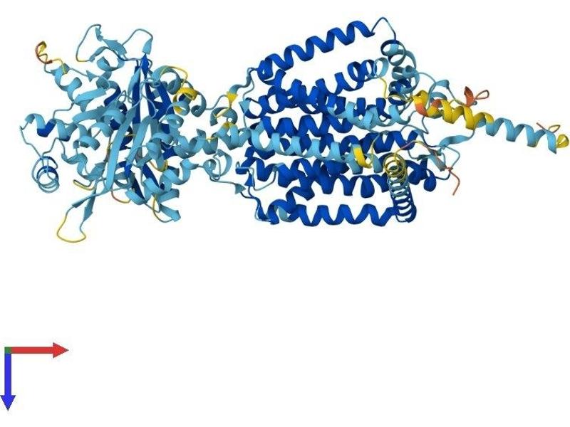 - MCFLRRPGAP ASWIWWRMLR QVLRRGLQSF CHRLGLCVSR HPVFFLTVPA VLTITFGLSA LNRFQTEGDL ERLVAPSHSL AKIERSLASS LFPLDQSKSQ LYSDLHTPGR YGRVILLSSP GDNILLQAEG ILQTHRAVME MKVNHKGYNY TFSHLCVLRN QDKKCVLDDI ISVLEDLRQA AVSNKTTARV QVRYPNTKLK DGRNSFIGHQ LGGVVEVPNS KDQRVKSARA IQITYYLQTY GSATQDLIGE KWENEFCKLM RKLQEEHQDL QLYSLASFSL WRDFHKTSIL TRSKVLVSLV LILTTATLSS SMKDCLRSKP FLGLLGVLTV CISIATAAGI FFITDGKYNS TLLGIPFFAM GHGTKGVFEL LSGWRRTKEN LPFKDRVADA YSDVMVTYTM TSSLYFITFG MGASPFTNIE AVKIFCQNMC VSILLNYFYI FSFFGSCLVF AGQLEQNRYH SIFCCKIPSA EYLDRKPVWF QTVMSDGHQQ TSHHETNPYQ HHFIQHFLRE HYNEWITNIY VKPFVVILYL IYASFSFMGC LQISDGASII NLLASDSPSV SYAMVQQKYF SNYSPVIGFY VYEPLEYWNS SVQEDLQRLC SGFTAVSWVE QYYQFLKTSN ISANNKTDFI SVLQSSFLKK PEFQHFRNDI IFSRAGDENN IIASRLYLVA RTSRDKQKEV IEVLDKLRPL SLSKSIRFIV FNPSFVFTDH YSLSVTVPVL IAGFGVLLVL ILTFFLVIHP LGNFWLILSV TSIELGVLGL MTLWNVDMDC ISILCLIYTL NFAIDHCAPL LYTFVLATEH TRTQCIKSSL QEHGTAILQN ITSFLIGLLP LLFVPSNLTF TLFKCLLLTG GCTLLHCFVI LPVFLTFFPP SKKHHKKKKR AKRKEREEIE CIEIQENPDH VTTV Sequence without tag. The proposed Strep-Tag is based on experience with the expression system. Our team may suggest an additional tag depending on the complexity of the protein. If you have a special request, please contact us.
