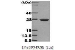Hsp27 (also known as the Estrogen-Regulated 24K protein, and hsp 28) is a member of the mammalian small heat shock protein family. Hsp27 is expressed constitutively in many tissues and its expression is increased to high levels after various types of stress including elevated temperatures, toxic metals, drugs and oxidants. Also, Hsp27 is phosphorylated in vivo on three phosphorylation sites (Ser15, Ser78 and Ser82) by protein kinases including MAPKAP kinase 2 and the stress-activated protein kinase SAPK2 (p38). Recombinant human Hsp27 was overexpressed in E. coli and purified by conventional chromatography.