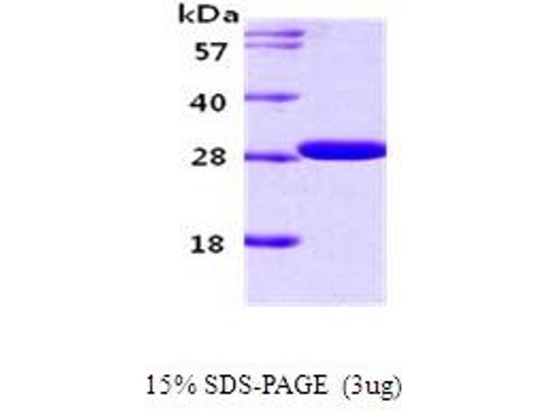 The 14-3-3 family of proteins plays a key regulatory role in signal transduction, checkpoint control, apoptotic and nutrient-sensing pathways. 14-3-3 proteins are highly conserved and ubiquitously expressed. There are at least seven isoforms, beta, gamma, epsilon,sigma, zeta, tau and eta that have been identified in mammals. The 14-3-3 gamma, a subtype of the 14-3-3 family of proteins, was thought to be brain and neuron-specific. It has been shown to interact with RAF1 and protein kinase C, proteins involved in various signal transduction pathways. Recombinant human YWHAG was expressed in E. coli and purified by using conventional chromatography techniques.