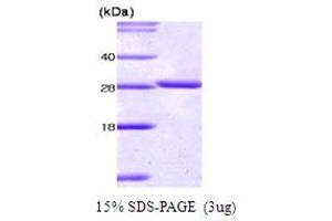 The 14-3-3 family of proteins plays a key regulatory role in signal transduction, checkpoint control, apoptotic and nutrient-sensing pathways. 14-3-3 proteins are highly conserved and ubiquitously expressed. There are at least seven isoforms, beta, gamma, epsilon,sigma, zeta, tau and eta that have been identified in mammals. The 14-3-3 tau, a subtype of the 14-3-3 family of proteins, was found in T Cells, brain and testes. This 14-3-3 tau is upregulated in patients with amyotrophic lateral sclerosis. Recombinant human YWHAQ was expressed in E. coli and purified by using conventional chromatography techniques.
