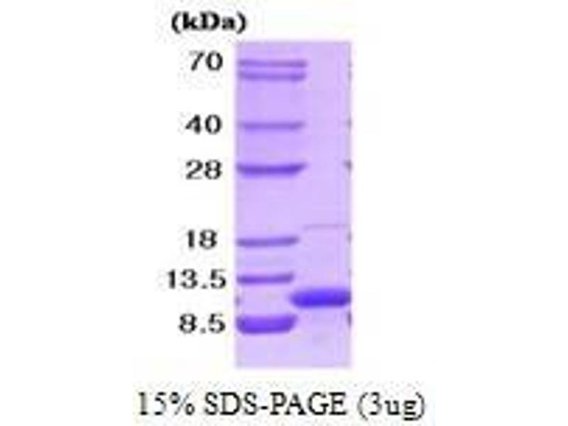 Cellubrevin, also known as VAMP 3, is present in recycling endosomes and endosome-derived vesicles. This protein has been implicated in recycling of transferrin receptors to the plasma membrane, secretion of alpha-granules in platelets, recycling of T-cell receptors to the immunological synapses, and membrane trafficking during cell migration. Recombinant cellubrevin was expressed in E. coli and purified by using conventional chromatography techniques.