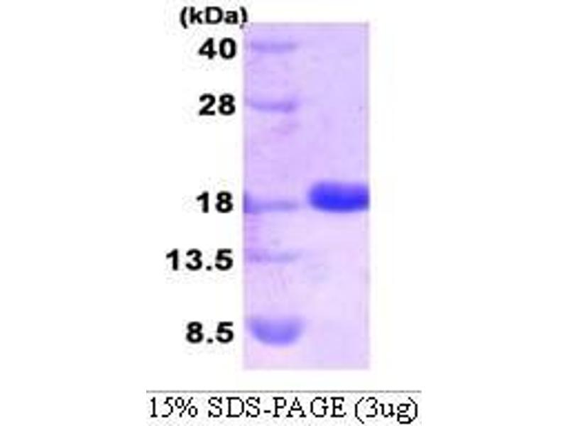 Small ubiquitin-related modifier 2 (SUMO-2) is a member of the SUMO protein family and functions in a manner similar to ubiquitin. However, unlike ubiquitin which targets proteins for degradation, SUMO-2 protein is involved in diverse cellular processes such as nuclear transport, DNA replication and repair, mitosis and signal transduction. This protein is not active until the last two amino acids of the carboxy-terminus have been cleaved off. Recombinant human SUMO2 protein was expressed in E. coli and purified by using conventional chromatography.