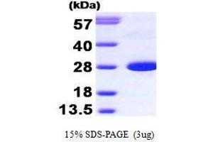 Calbindin 1 is a calcium binding protein belonging to the troponin C superfamily. Calbindin is expressed in neural tissues. It plays an essential role in calcium regulation (including calcium transport and uptake, calcification of bone and teeth) and calcium related signalling in neurons and transiently in embryological development. This calbindin also has a role in protecting neurons from apoptotic cell death. Disregulation of this calbindin protein relates to epilepsy, amyotrophic lateral sclerosis, Huntington's disease. Recombinant human Calbindin1 was expressed in E. coli and purified by using conventional chromatography techniques.