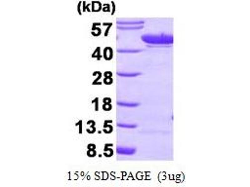 Alpha-enolase, also known as Enolase 1, is one of three enolase isoenzymes and a glycolytic enzyme expressed in most tissues. This protein plays a key role in anaerobic metabolism under hypoxic conditions and may act as a cell surface plasminogen receptor during tissue invasion. Abnormal expression of alpha-enolase is associated with tumor progression in some cases of breast and lung cancer. It also has been identified as an autoprotein associated with Hashimoto's encephalopathy and severe asthma. Recombinant human alpha-enolase was expressed in E. coli and purified by using conventional chromatography.