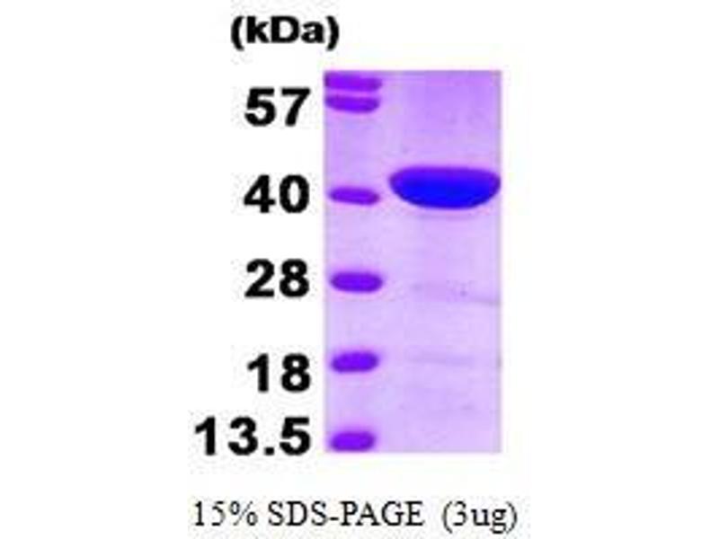 Macrophage-capping protein, also known as CAPG, belongs to the gelsolin/villin family of actin-regulatory proteins. CAPG is a calcium-sensitive DNA-binding protein that plays a role in macrophage function. It is expressed in macrophages and macrophage-like cells and can localize both to the nucleus and the cytoplasm. This protein reversibly blocks the barbed ends of F-actin filaments in a Ca2+ and phosphoinositide-regulated manner, but does not sever preformed actin filaments. Recombinant human CAPG was expressed in E. coli and purified by using conventional chromatography techniques.