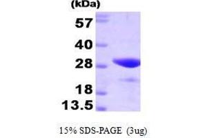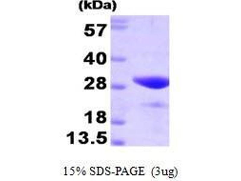 FK506 binding protein 3 (FKBP3), also known as FKBP25, is a member of the immunophilin protein family, which play a role in immunoregulation and basic cellular processes involving protein folding and trafficking. FKBP3 associates with transcriptional repressor protein YY1 and histone deaceltylases, HDAC1 and HDAC2. Also, FKBP3 may contain several casein kinase II phosphorylation sites, which are believed to be important for cell growth regulation. It is localized in the nucleus and is expressed in the brain, testis, ovary, and spleen. Recombinant human FKBP3 was expressed in E. coli and purified by using conventional chromatography techniques.