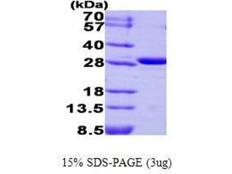 CA3, also known as carbonic anhydrase III, is an enzyme that catalyses rapid conversion of carbon dioxide to bicarbonate and protons (CO2 + H2O = HCO3 + H+). This protein is involved in a variety of biological processes, including respiration, calcifica-tion, acid-base balance, bone resorption and the formation of aqueous humor, cerebrospinal fluid, saliva and gastric juice. It contains a zinc ion in their active site and the primary function of this enzyme is known to maintain acid-base balance in blood and other tissues, and to help transport carbon dioxide of tissues. Recombinant CA3 protein was expressed in E. coli and purified by using conventional chromatography techniques.