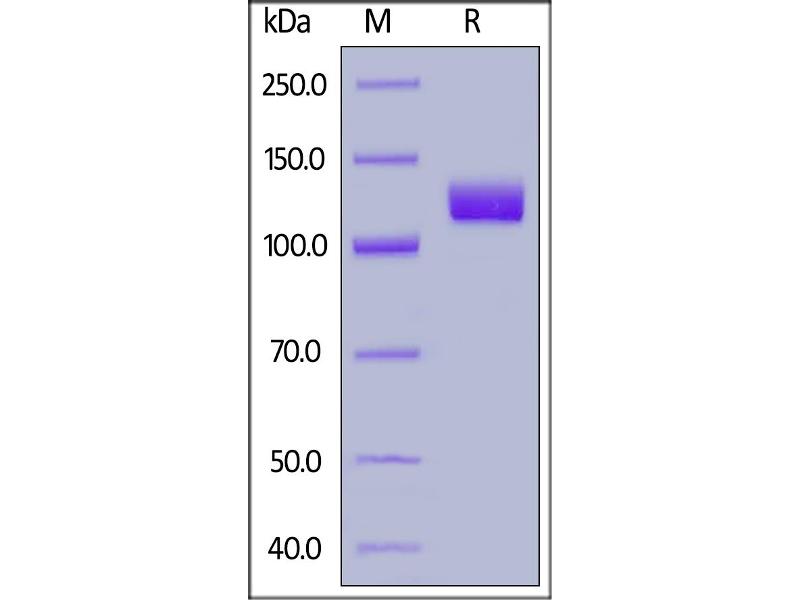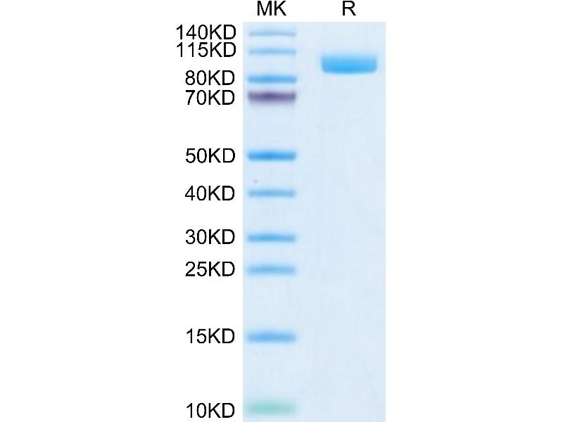 The purity of the protein is greater than 90 % as determined by SDS-PAGE and Coomassie blue staining.